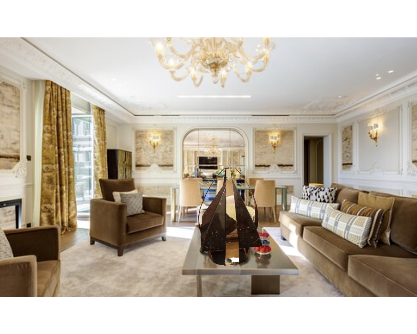 Marble, stainless steel miror polished - 35x35x65cm